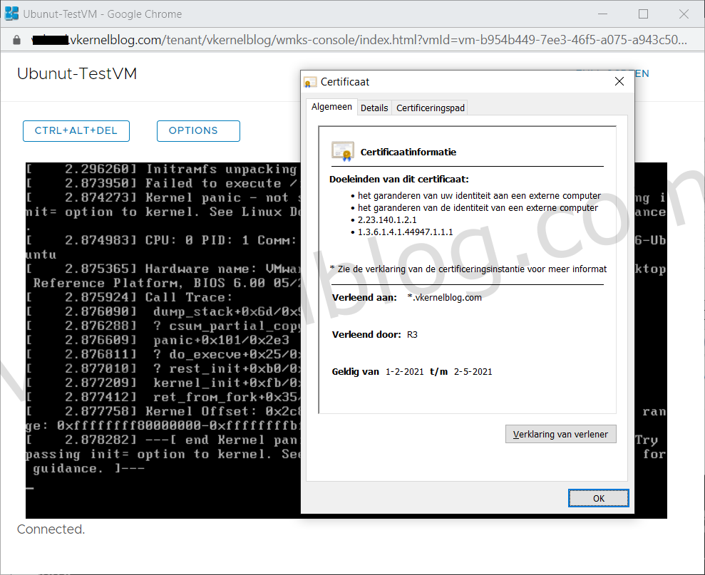 I have deployed a Cloud Director 10.2 setup in my home lab, but I haven't configured the public address and a wildcard certificate yet for the web GUI and the console proxy. In this blog post, I will show you how to request a let's encrypt wildcard certificate, and I will show you how to configure the wildcard certificate in the Cloud Director cell. Let's Encrypt is a nonprofit certificate authority where you can request a free SSL certificate.